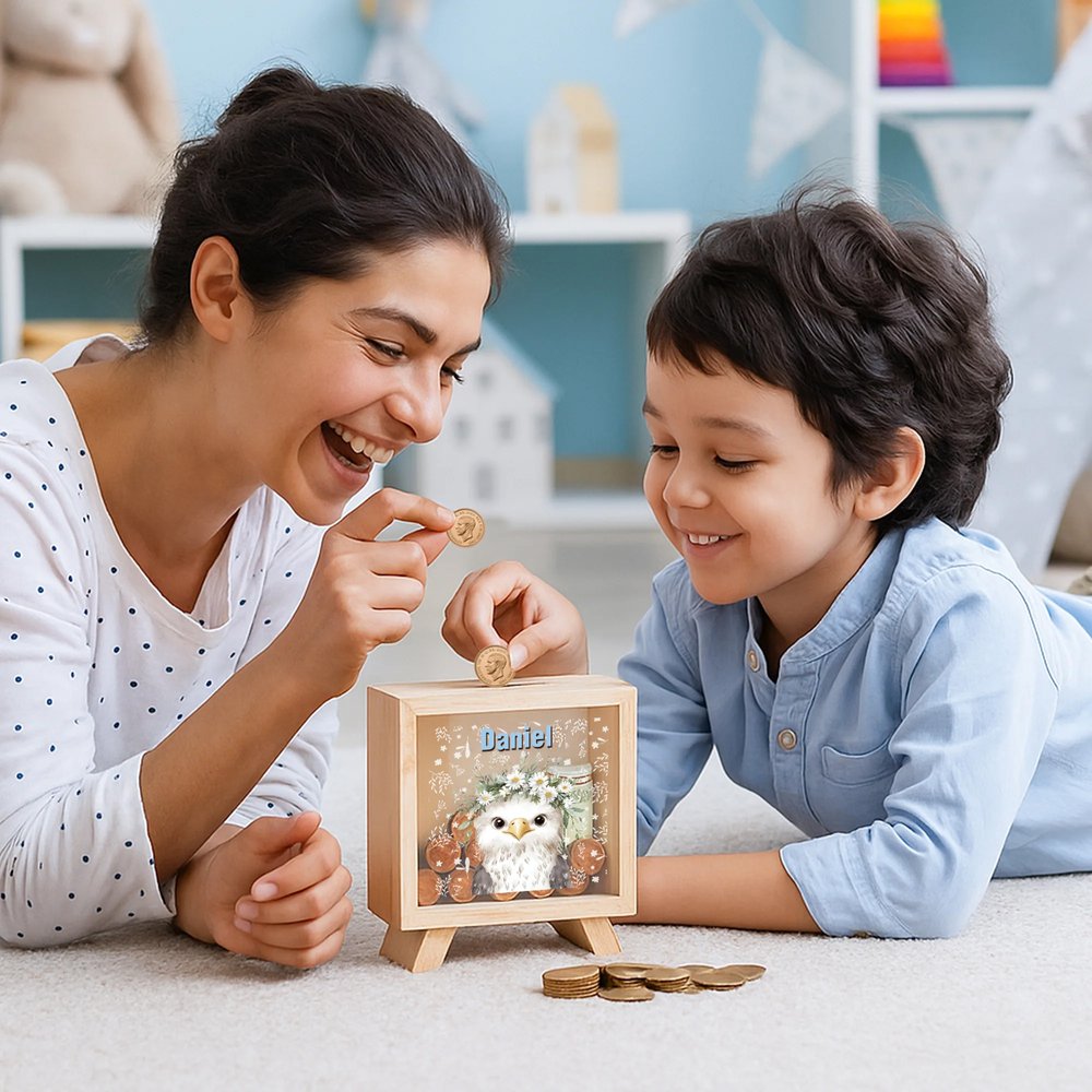 Tämä hurmaava säästöpossu esitteilee monenlaisia ihastuttavia eläin ja kukkakuvioita, jotka kiehtovat lasten mieltä. Mukautettavilla vaihtoehdoilla sekä eläinkuvioon että lapsen nimeen se tuo leikinomaista ja henkilökohtaista sävyä, mikä tekee rahan säästämisestä hauskan ja luovan harrastuksen. Se sopii täydellisesti lastenhuoneeseen tai vauvanhuoneeseen sekä käytännöllisenä säästötyökaluna että leikkisänä koristeena, ja miellyttää sekä poikia että tyttöjä.