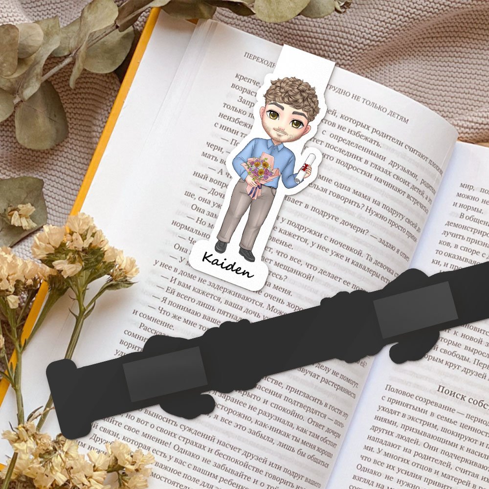 Tämä magneettinen kirjanmerkkileike on erittäin luova, ja siinä on sarjakuvahahmoja valmistujaispuvuissa, jotka kuvaavat elävästi valmistujaiskohtausta. Voit myös mukauttaa nimesi kirjanmerkkiliittimeen, mikä lisää yksinoikeuden tunnetta ja tekee siitä hyvin henkilökohtaisen lukutarvikkeen.