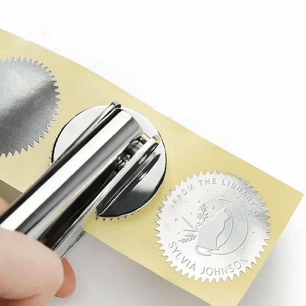 Tämä huolellisesti käsityönä valmistettu kohokuviointilaite on ihanteellinen lahja lemmikkieläinten ystäville, kirjailijoille, kirjastonhoitajille ja kirjakerhon jäsenille - kaikille, jotka arvostavat kirjoitettua sanaa. Pikaisella leimauksella voit kohokuvioida lemmikin nimen kauniisti jokaisen rakkaimman kirjan kanteen.