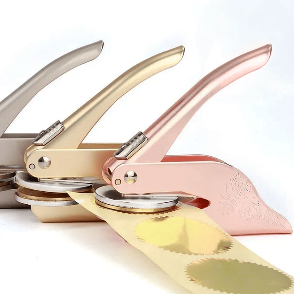 | Mittaus: | Embosser - 4.13" × 4.13" (10.5cm × 10.5cm); Kuvio - 1.6" (4cm); Seal Label Halkaisija - 1.65" (4.2cm) |