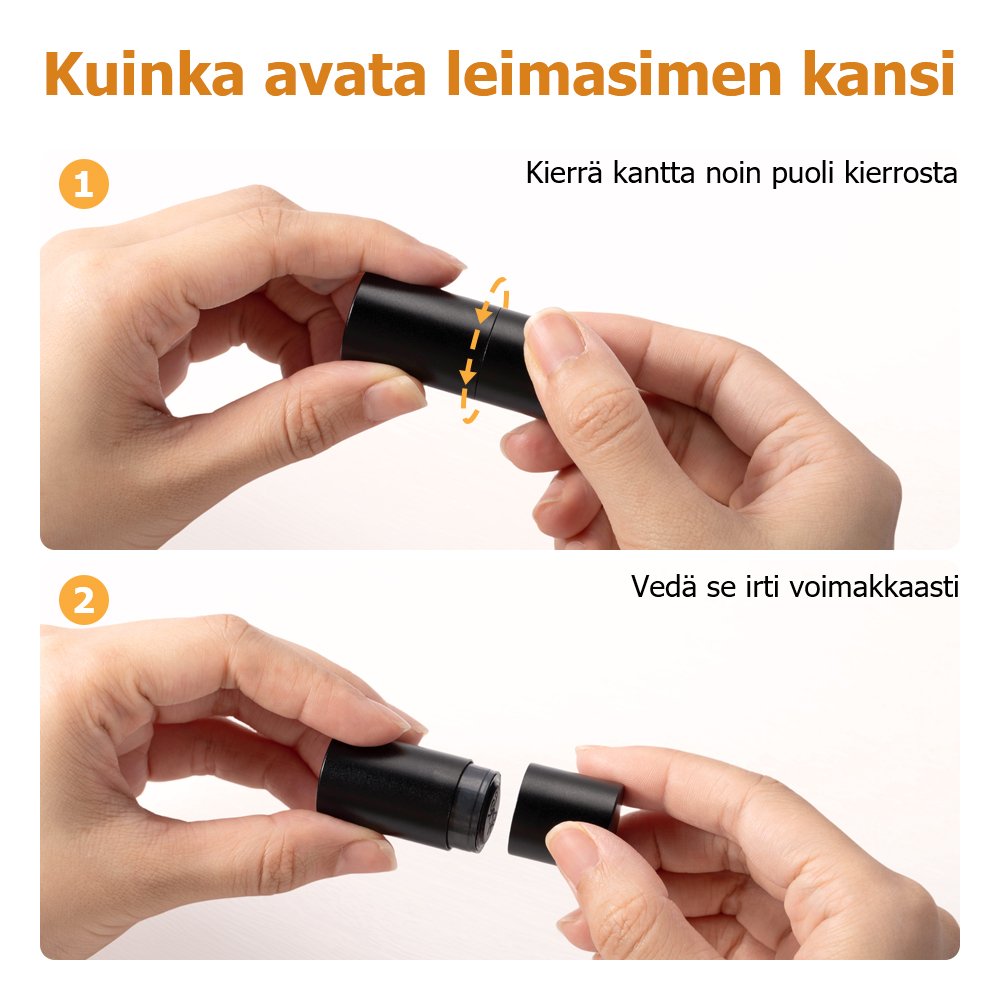 Vankka kumileiman pinta takaa selkeät ja tasaiset jäljet joka kerta. Pieni musta leima toimitetaan käytännöllisessä metallisessa säilytysrasiossa, joten voit kuljettaa ja suojata sen helposti.